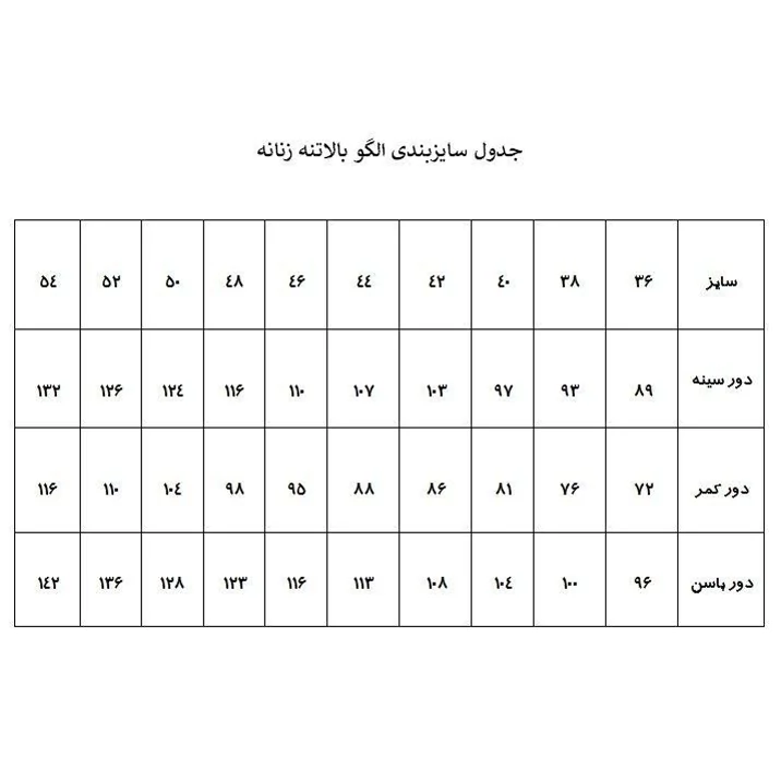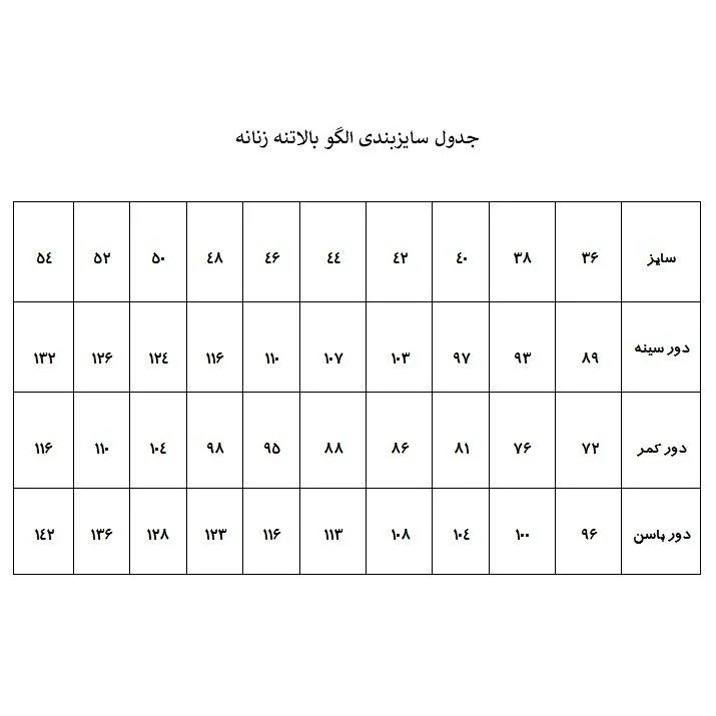 سایر توضیحات: مناسب دور سینه 103 - دور کمر 86 - دور باسن 108