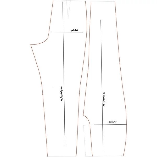 سایر توضیحات: خط باسن، خط راستای پارچه و خط زانو مشخص شده است