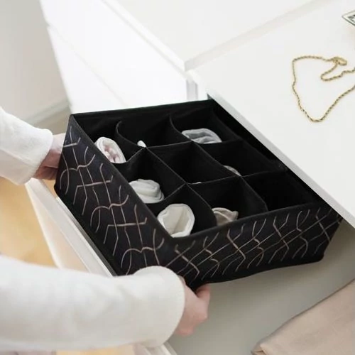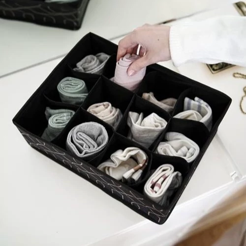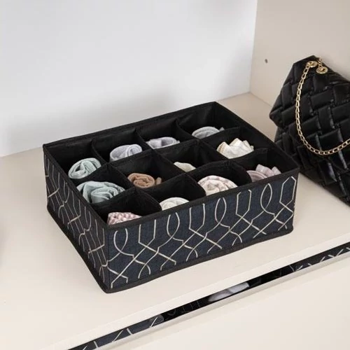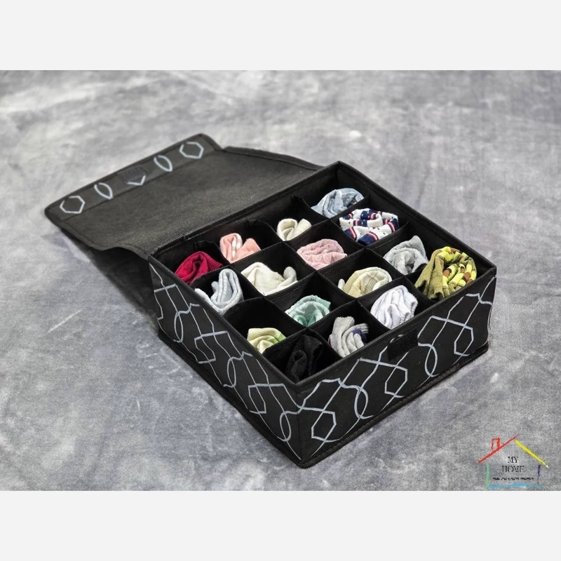 نظم دهنده درب دار 16 خانه مناسب برای نظم دهی لباس زیر , شال ,جوراب و غیره قابل استفاده در کشو و کمد می باشد. این ارگانایزر ترکیه ای دارای 16 خانه و در ابعاد 28*28*12 می باشد. دیواره های این کالا از جنس مقوایی بسیار محکم با پوشش پارچه است و ایستایی دارد.