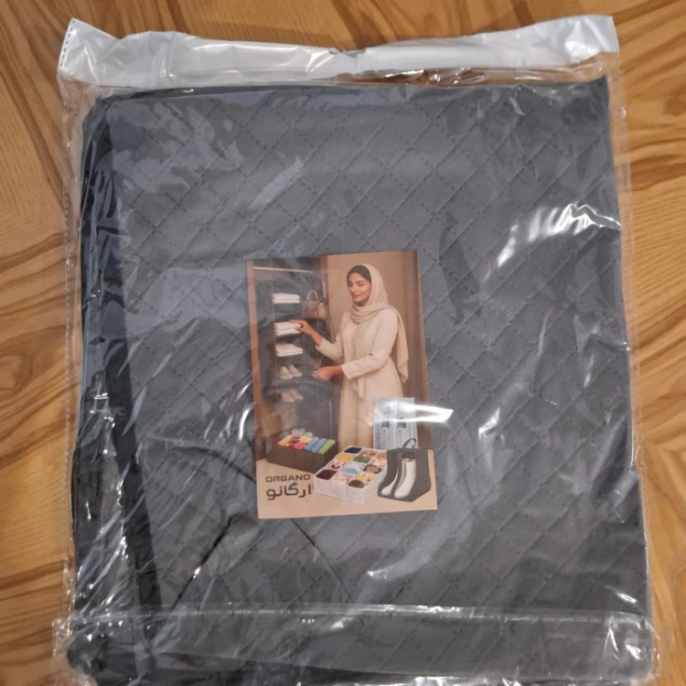 باکس نظم دهنده لباس ارگانو دارای 5 خانه (بسته شامل 2 عدد باکس و 1 عدد آویز 3 خانه است) و از جنس پارچه ضخیم و طلق شفاف ساخته شده و طول آن 95 عرض 35 و ارتفاع 15 سانتیمتر است و مناسب نگهداری کفش و پیراهن و البسه, ملحفه و سایر لوازم هست.در این بسته نظم دهنده 3 خانه نیز همراه محصول ارسال می گردد.همچنین دارای درب زیپ دار جهت جلوگیری از نفوذ گرد وغبار می باشد که قابلیت شستشو با دست و ماشین لباسشویی را دارد.