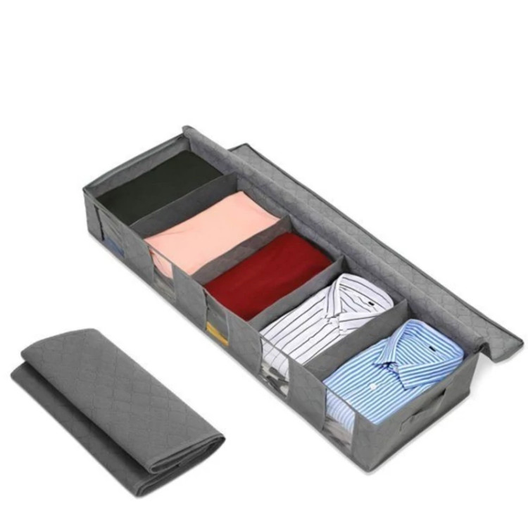 نظم دهنده مای هوم مدل 5 خانه از جنس پارچه ضخیم و طلق شفاف ساخته شده و طول آن 97 عرض 33 و ارتفاع 15 سانتیمتر است و مناسب نگهداری البسه, ملحفه و سایر لوازم هست.همچنین دارای درب زیپ دار جهت جلوگیری از نفوذ گرد وغبار و حشرات می باشد که قابلیت شستشو با دست و ماشین لباسشویی را دارد.