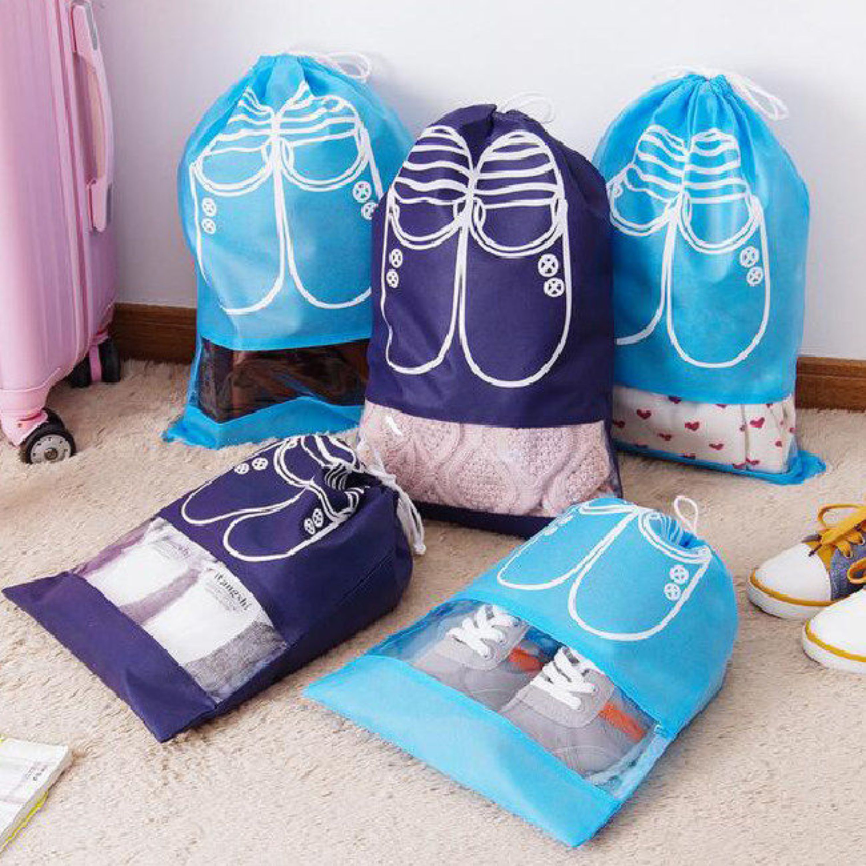 نظم دهنده کفش مای هوم در ابعاد 30x40 محصولی با طراحی ساده ، اما مورد نیاز و کابردی برای تمامی افراد در شرایط مختلف است. این پوشش از جنس پارچه و طلق پلاستیکی کاملاً شفاف تولید شده ، به طوری که محتویات داخل پوشش از روی آن قابل مشاهده است. درب کاور با استفاده از بند جمع شونده به سادگی باز و بسته می شود . ابعاد و حجم مناسب در کنار قابلیت انعطاف پذیری به شما این امکان را می دهد تا از آن در منزل ، مسافرت ، مکان های عمومی برای حفظ و نگهداری کفش خود استفاده نمایید.در کنار کارایی کیسه کفش مسافرتی ، می توان به زیبایی و شکل ظاهری مناسب محصول نیز اشاره نمود. این محصول در چهار رنگ با طرح روی کیسه به شکل یک جفت کفش بوده که علاوه بر جلوه ی شیک و فانتزی نمایانگر ماهیت و کارایی محصول میباشد. خصوصیت دیگر نگهدارنده کفش ، جلوگیری از تماس کفش با سطوح و دیگر لوازم است ، به همین دلیل می توانید بدون نگرانی از آلوده شدن وسایل و یا سطوح از آن برای نگهداری کفش و دمپایی درون جاکفشی ، کمد، خودرو یا حتی چمدان و یا در مساجد برای نگهداری کفش های خود استفاده نمایید .همچنین علاوه بر کفش می توان از آن برای نگهداری سایر وسایل نظیر جوراب و اسباب بازی های کوچک استفاده نمود.