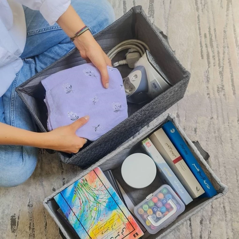 باکس نظم دهنده استند دار جمع شونده با طرح پارچه بری بری (قهوه ای و مشکی و طوسی) محصولی کاربردی میباشد که می توانید به لباس ها, شلوار , حوله و اکسسوری خود نظم ببخشید و همیشه یک فضای مرتب شده داشته باشید. این باکس از جنس پارچه ضخیم 3 لایه + فوم و میله ضخیم آبکاری شده 4 میل و در ابعاد 40x25x25 می باشد.