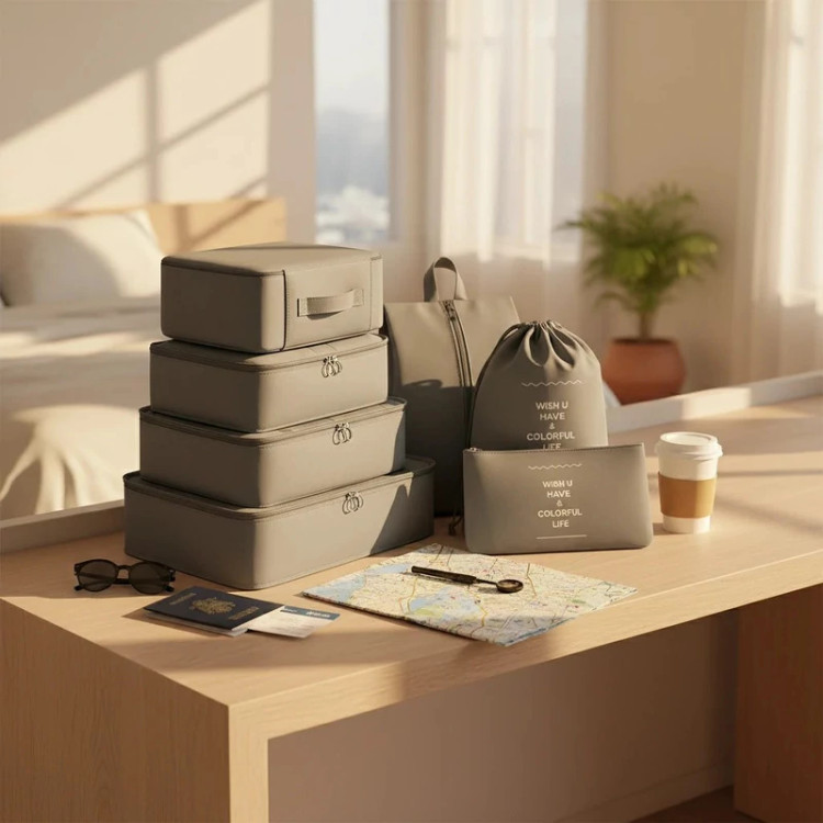 این بسته شامل 1 عدد آویز 3 خانه از جنس پارچه اسپان و 7 تکه نظم دهنده (3 عدد کیسه لباس با درب توری , 3 عدد کیف و 1 عدد کاور کفش) از جنس پارچه شمعی ترک ضد آب و رطوبت می باشد.