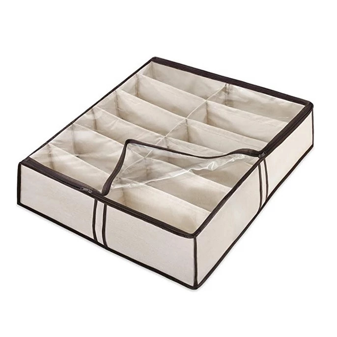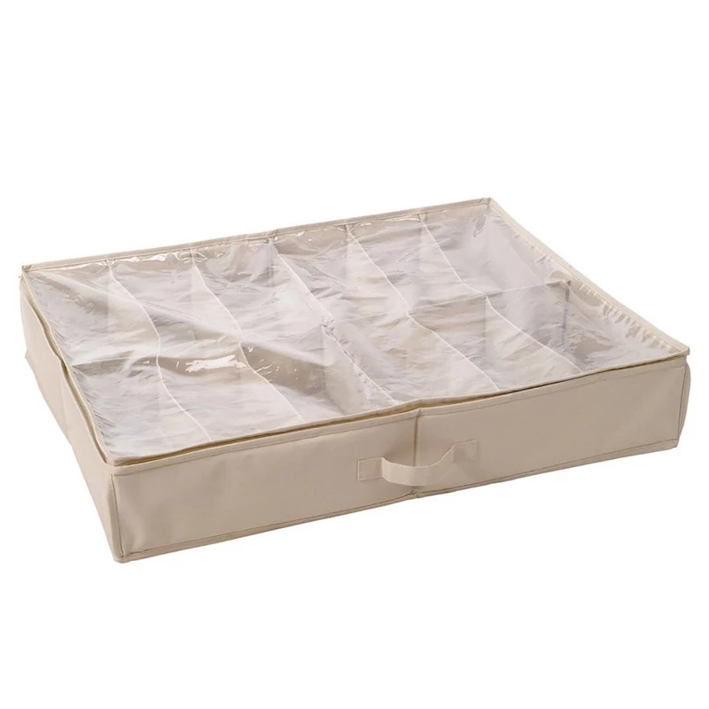 باکس نظم دهنده کفش مای هوم مدل شوزاندر(Shoes Under) کد 207 در ابعاد 53x66x15 سانتیمتر و دارای 12 خانه می باشد که میتوانید نظم مناسبی به کفش های خود بدهید و همچنین تمام متریال بدنه آن پارچه و درب آن طلق شفاف است.با توجه به وجود کالای غیر اصل این محصول حتما در زمان خرید به نام و نشان My Home Pack توجه بفرمایید و در صورت مغایرت کالا را عودت دهید.