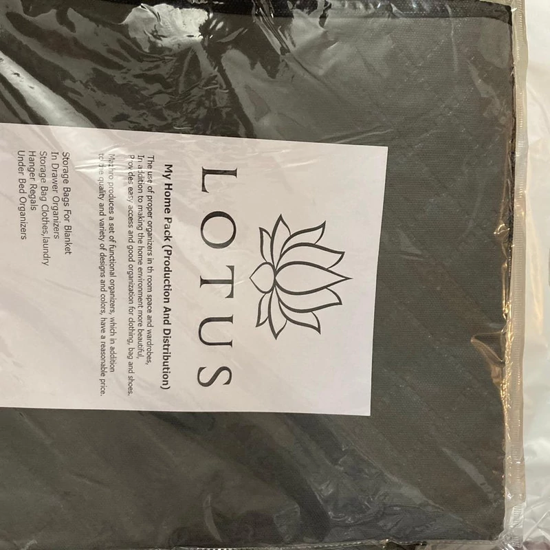 باکس نظم دهنده لوتوس از جنس پارچه پلی استر 4 لایه و طلق شفاف ساخته شده که بتوانید محتویات داخل باکس را مشاهده کنید.طول این محصول 62 عرض 40 و ارتفاع 33 سانتیمتر است.همچنین دارای درب زیپ دار(2عدد زیپ) جهت جلوگیری از نفوذ گرد وغبار و حشرات می باشد که قابلیت شستشو با دست و ماشین لباسشویی را نیز دارد.
