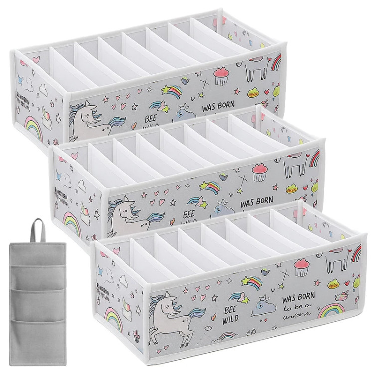 این بسته شامل 3 عدد نظم دهنده کودک و 1 عدد آویز 3 خانه می باشد. نظم دهنده کشو کودک ارگانو مدل یونیکورن ( طرح اسب تک شاخ ) در ابعاد 33x15x11 سانتیمتر و دارای 8 خانه می باشد که به راحتی می توانید وسایل کودک خود را در آن جای داده و مرتب کنید.