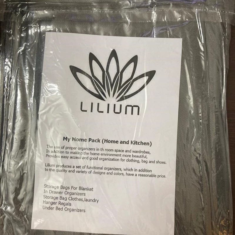 باکس نظم دهنده لباس لیلیوم دارای 5 خانه و از جنس پارچه ضخیم و طلق شفاف ساخته شده و طول آن 97 عرض 33 و ارتفاع 15 سانتیمتر است و مناسب نگهداری البسه, ملحفه و سایر لوازم هست.همچنین دارای درب زیپ دار جهت جلوگیری از نفوذ گرد وغبار می باشد که قابلیت شستشو با دست و ماشین لباسشویی را دارد.