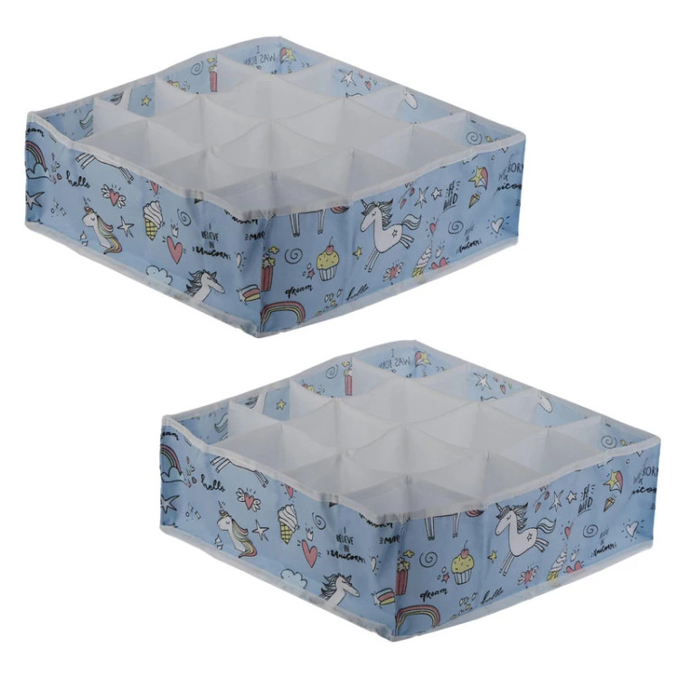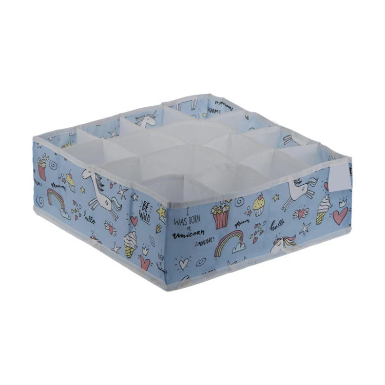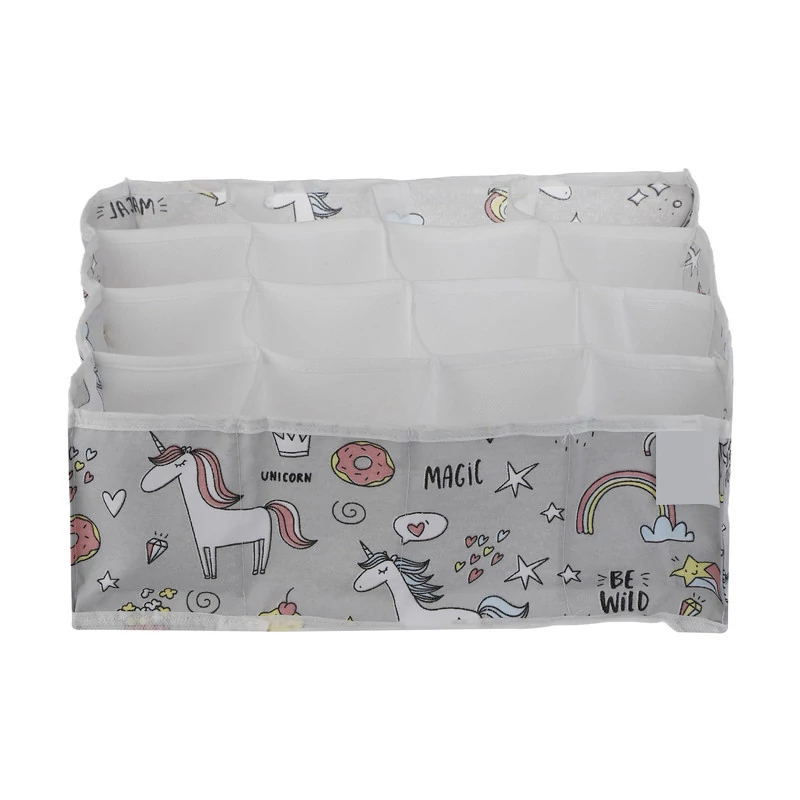 نظم دهنده کشو لیلیوم مدل تک شاخ (یونیکورن) با بهترین دوخت , چاپ و پارچه پلی استر ضخیم با کیفیت تولید شده است.این ارگانایزر در ابعاد 31x31x11 و دارای 16 خانه می باشد که میتوانید شورت و جوراب و اکسسوری کودک خود را درون آن نظم دهید
