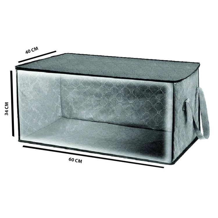 باکس لباس و پتو لیلیوم از جنس پارچه پلی استر 4 لایه و طلق شفاف تولید شده که بتوانید محتویات داخل باکس را مشاهده کنید.طول این محصول 60 عرض 40 و ارتفاع 34 سانتیمتر است.همچنین دارای درب زیپ دار(2عدد زیپ) جهت جلوگیری از نفوذ گرد وغبار و حشرات می باشد که قابلیت شستشو با دست و ماشین لباسشویی را نیز دارد.