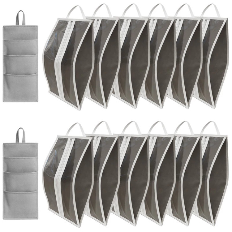 این بسته شامل 12 نظم دهنده کفش و 2 آویز 3 خانه می باشد.ارگانایزر کفش ارگانو از جنس پارچه پلی استر سوزنی و طلق شفاف با کیفیت می باشد که به راحتی می توانید کفش ها را کاور کرده و داخل کمد , ساک یا چمدان قرار دهید.شما میتوانید هر کفشی را که کمتر احتیاج دارید را داخل کاور قرار دهید و نظم خاصی به چیدمان کفشهای خود داده و از آسیبهای احتمالی یا غبار که باعث کدر شدن کفش میشود جلوگیری کنید.