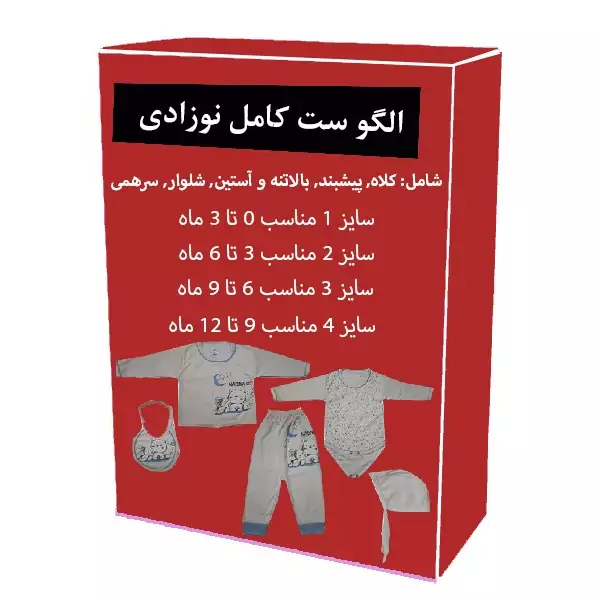 الگو آماده خیاطی ست کامل نوزادی کلاه - پیشبند - بالاتنه و آستین - شلوار و سرهمی مناسب 0 تا 3 ماه - 3 تا 6 ماه - 6 تا 9 ماه - 9 تا 12 ماه