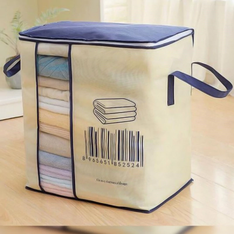 باکس نظم دهنده مای هوم مدل بارکد از جنس پارچه ضخیم و طلق شفاف ساخته شده و طول آن 46 عرض 28 و ارتفاع 51 سانتیمتر است که میتوانید انواع لباس و پتو را در آن جای دهید. همچنین دارای درب زیپ دار جهت جلوگیری از نفوذ گرد وغبار و حشرات می باشد که قابلیت شستشو با دست و ماشین لباسشویی را دارد.