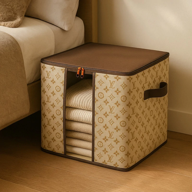کاور پتو و لباس ارگانو مدل آرمانی از جنس پارچه پلی استر ضخیم و طلق شفاف ساخته شده است.(این بسته شامل 2 عدد باکس و 1 عدد نظم دهنده 3 خانه است) که طول آن 48 عرض 30 و ارتفاع 52 سانتیمتر است که میتوانید انواع لباس و پتو را در آن جای دهید. این محصول قابلیت شستشو با دست و ماشین لباسشویی را دارد.