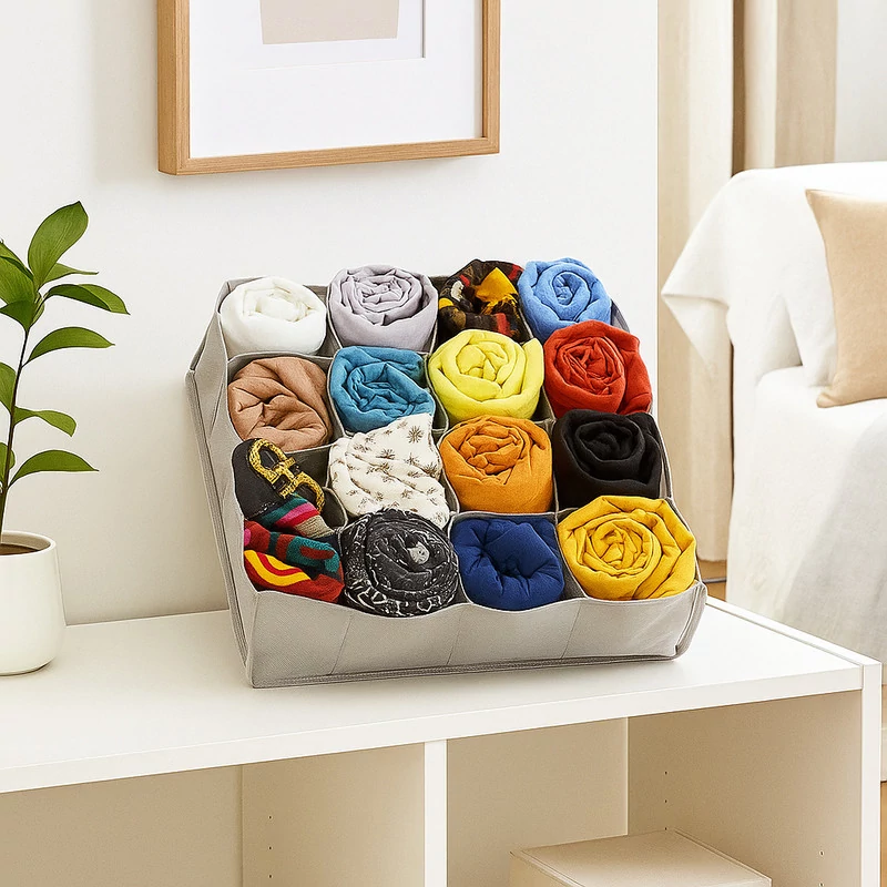 تو کشویی 16 خانه ارگانو از جنس پارچه پلی استر ضخیم جهت نظم دادن به لباس زیر, شال, جوراب و ... در کشو است.(بسته شامل 1 عدد نظم دهنده 16 خانه و 1 عدد نظم دهنده 3 خانه است) ابعاد این کالا در مدل 16 خانه 36x36x12 سانتیمتر است.