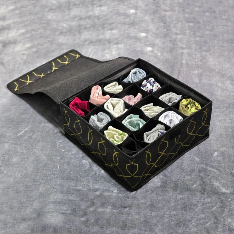 نظم دهنده درب دار 16 خانه 3 لایه مناسب برای نظم دهی لباس زیر , شال ,جوراب و غیره قابل استفاده در کشو و کمد می باشد. این ارگانایزر ترکیه ای دارای 16 خانه و در ابعاد 28*28*12 می باشد. دیواره های این کالا از جنس مقوایی بسیار محکم با پوشش پارچه است و ایستایی دارد.