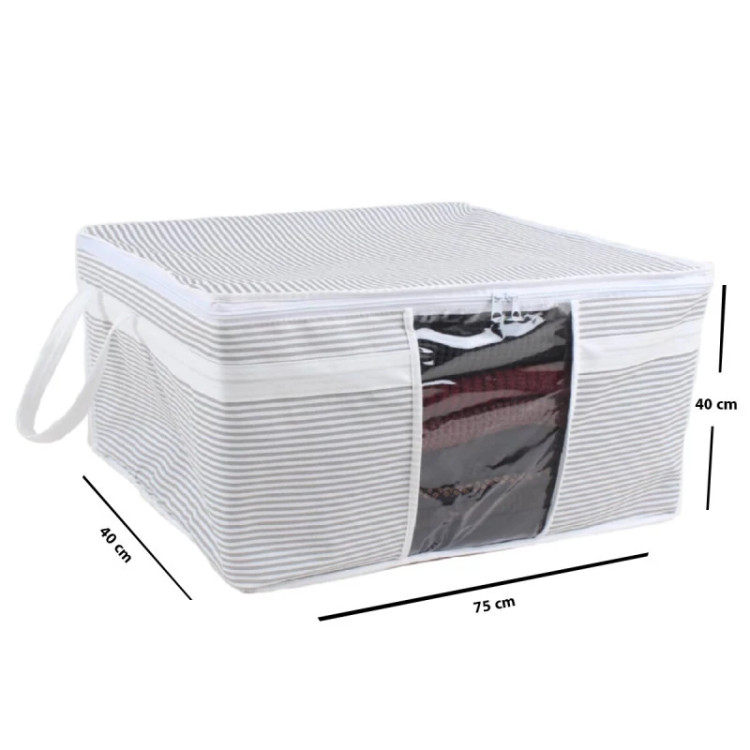 باکس نظم دهنده لیلیوم از جنس پارچه ضخیم فلامنت و با بهترین کیفیت ساخت ترکیه است.این ارگانایزر در سایز لارج و با ابعاد 75x40x40 و سایز اسمال 45x40x30 می باشد که به راحتی می توانید پتو , لباس و وسایل خود را در آن جای داده و مرتب کنید.
