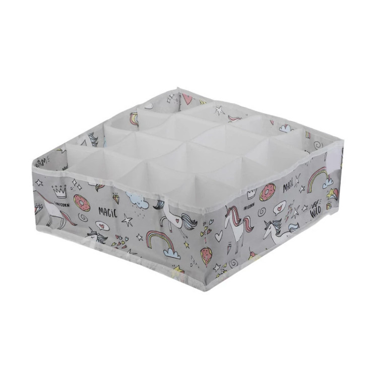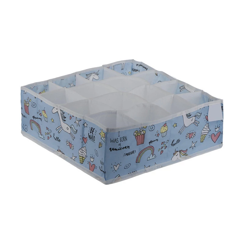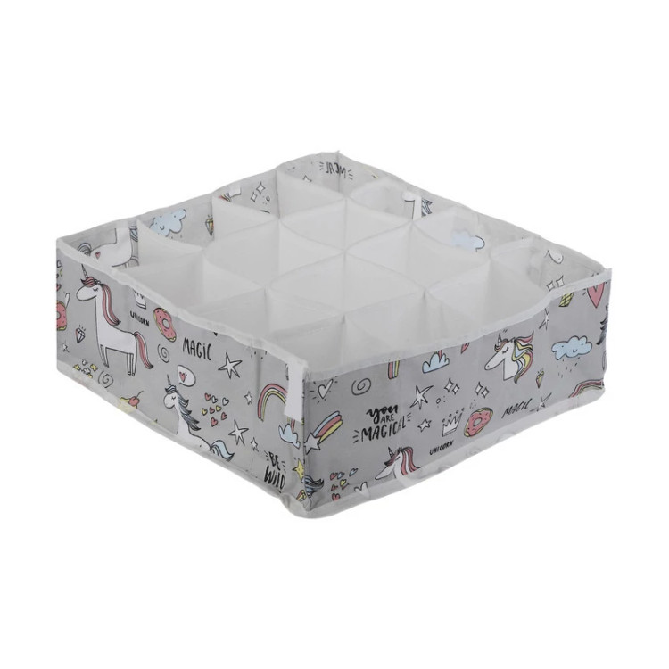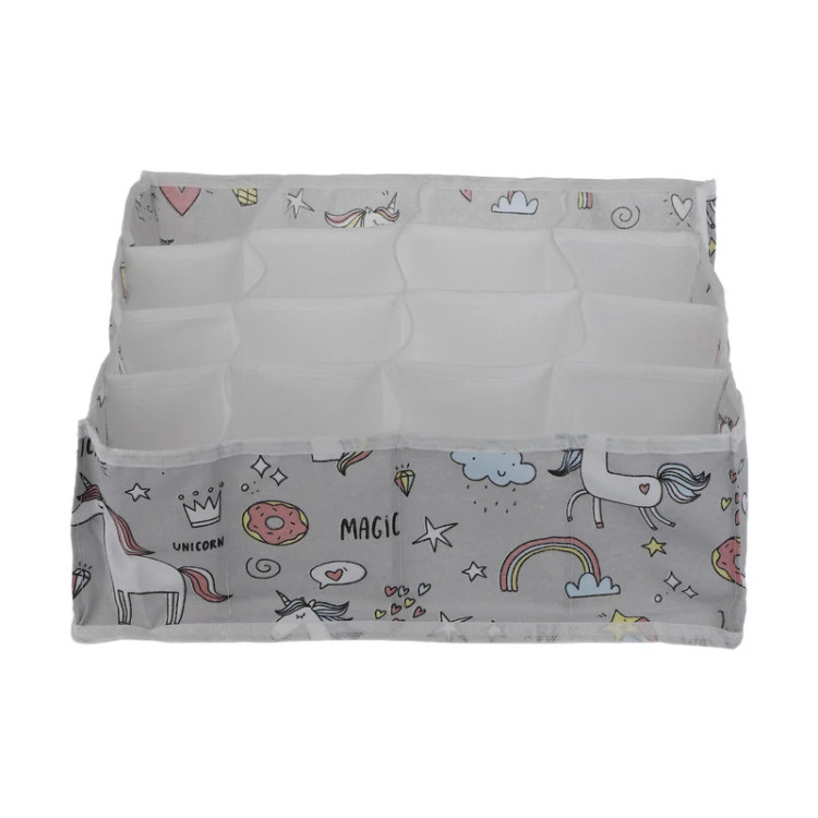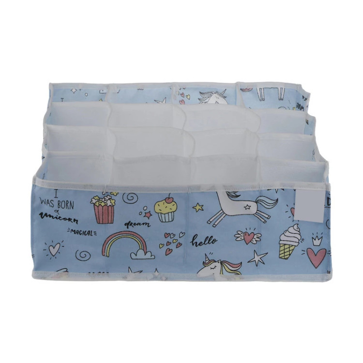 نظم دهنده کشو لوتوس طرح تک شاخ (یونیکورن) با بهترین دوخت , چاپ و پارچه پلی استر ضخیم با کیفیت تولید شده است.این ارگانایزر در ابعاد 31x31x11 و دارای 16 خانه می باشد که میتوانید شورت و جوراب و اکسسوری و غیره کودک خود را درون آن نظم دهید