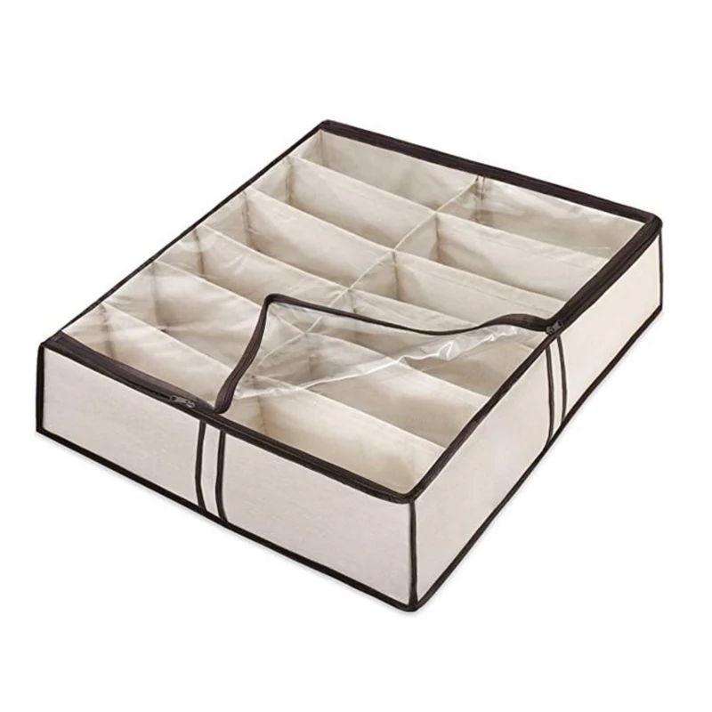 باکس نظم دهنده کفش مای هوم مدل شوزاندر(Shoes Under) رنگ طوسی در ابعاد 53x66x15 سانتیمتر و دارای 12 خانه می باشد که میتوانید نظم مناسبی به کفش های خود بدهید و همچنین تمام متریال بدنه آن پارچه و درب آن طلق شفاف است.