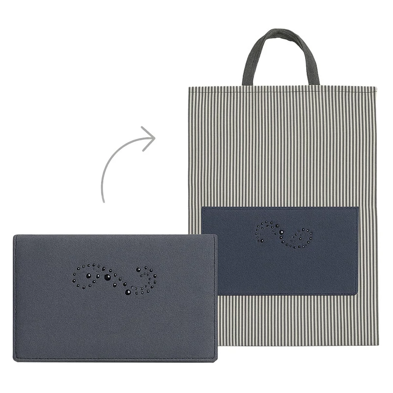 سایر توضیحات: این ساک دستی با طراحی خاص و کاربردی، گزینهای ایدهآل برای افرادی است که به دنبال یک کیف سبک، قابل حمل و چندمنظوره هستند. بدنه ساک از پارچه مقاوم با طرح راهراه تولید شده و جیب جلویی آن از چرم مصنوعی با نگینکاری به زیبایی تزیین شده است. ویژگی منحصربهفرد این محصول، قابلیت جمع شدن آسان و قرار گرفتن در کیف کوچک مخصوص خود است که حمل و نگهداری آن را بسیار راحت میکند.