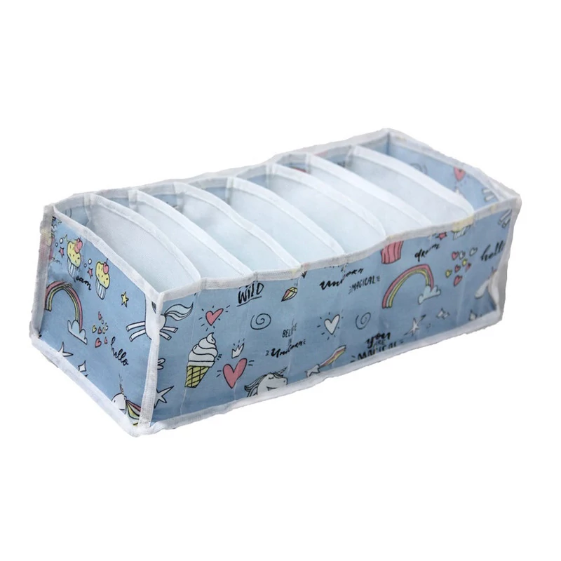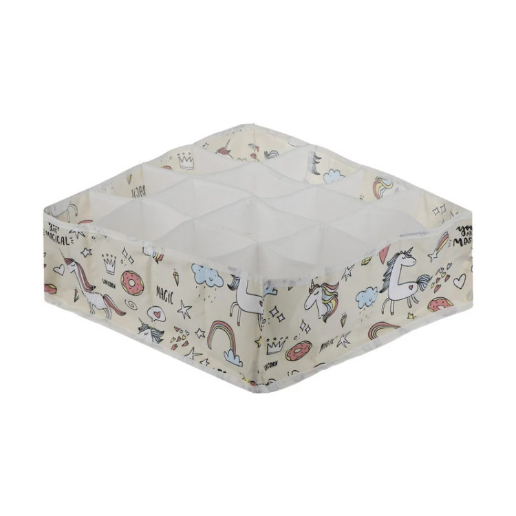 نظم دهنده کشو لوتوس طرح تک شاخ (یونیکورن) با بهترین دوخت , چاپ و پارچه پلی استر ضخیم با کیفیت تولید شده است.این ارگانایزر در ابعاد های 31x31x11 و دارای 16 خانه و ابعاد 35x16x11 دارای 8 خانه می باشد که میتوانید شورت و جوراب و اکسسوری و غیره کودک خود را درون آن نظم دهید