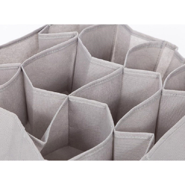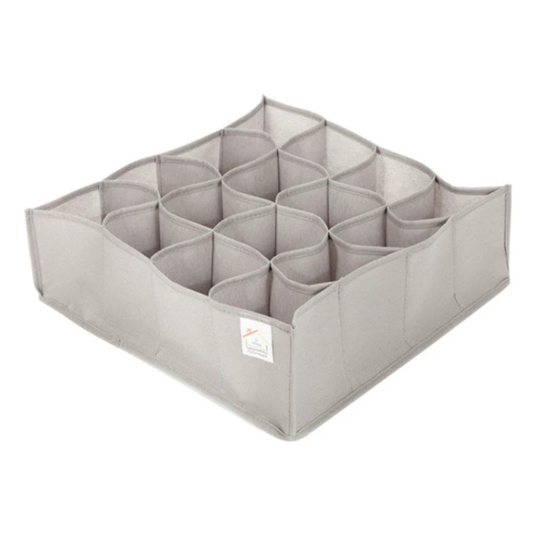 نظم دهنده های پارچه ای وسیله های پر کاربردی هستن که به نظم دهی کمد شما میتونن کمک کنند.تو کشویی 16 خانه مای هوم رنگ طوسی جهت نظم دادن به لباس زیر, شال, جوراب و ... در کشو است.ابعاد این کالا 35x35x11 است.