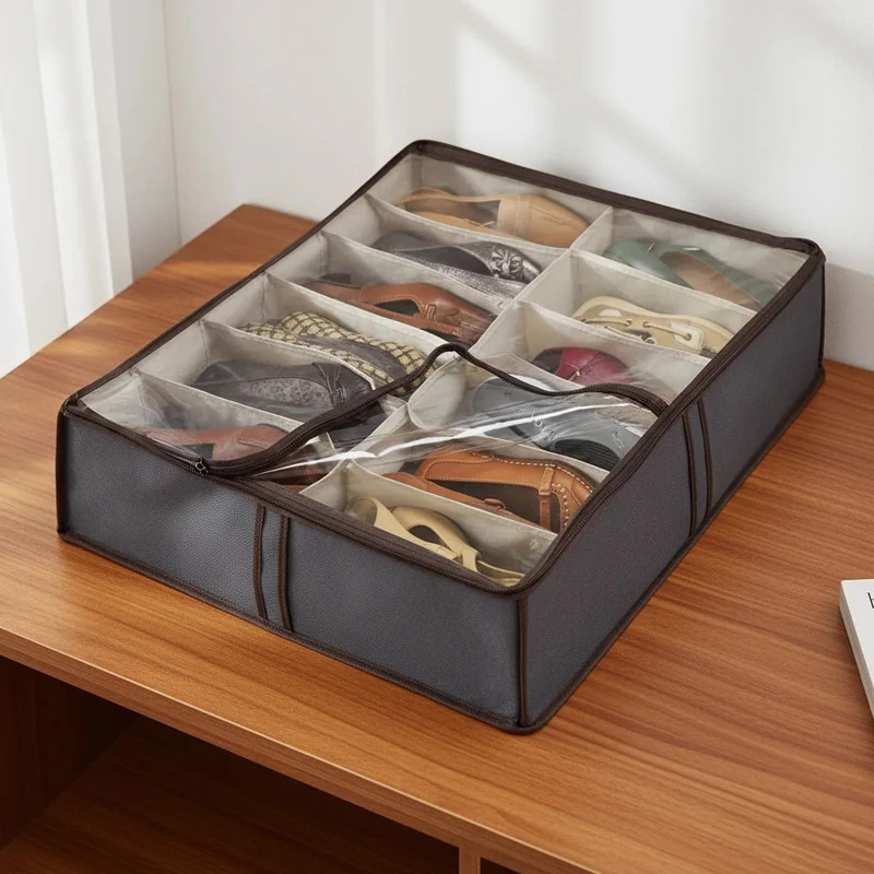 این بسته شامل 1 کاور کفش و 1 آویز 3 خانه است.کاور کفش لیلیوم در ابعاد 55x65x15 سانتیمتر و دارای 12 خانه می باشد که میتوانید نظم مناسبی به کفش های خود بدهید و همچنین تمام متریال بدنه آن پارچه و درب آن طلق شفاف است.