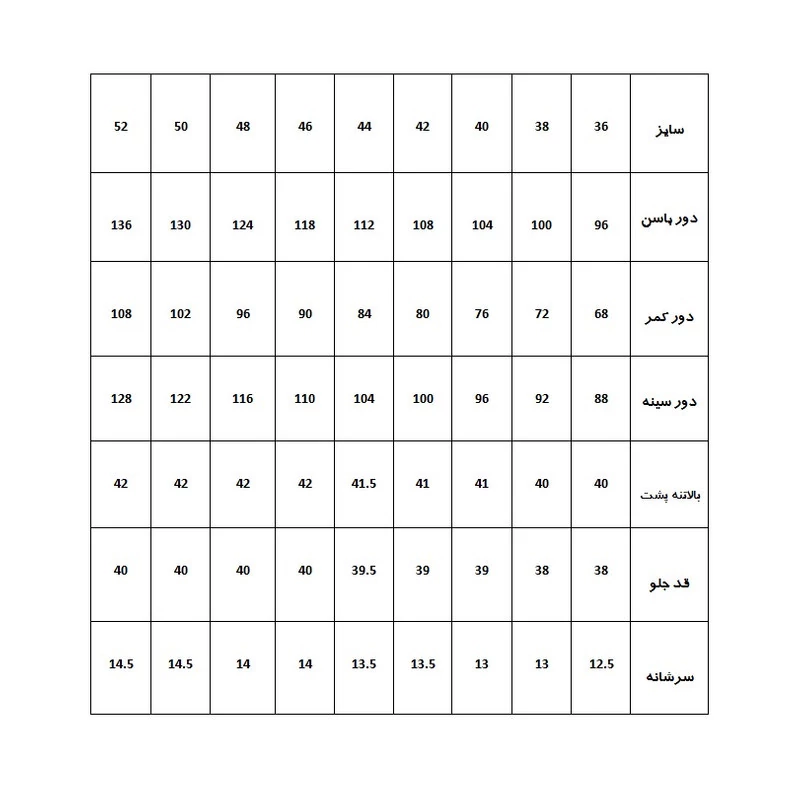 این مجموعه 9 عددی شامل بالاتنه جلو و پشت به همراه آستین رگالی(بدون پنس) از سایز 36 تا 52 می باشد و هر سایز به صورت جداگانه بر روی یک کاغذ کرافت در ابعاد 100x70 کشیده شده است.