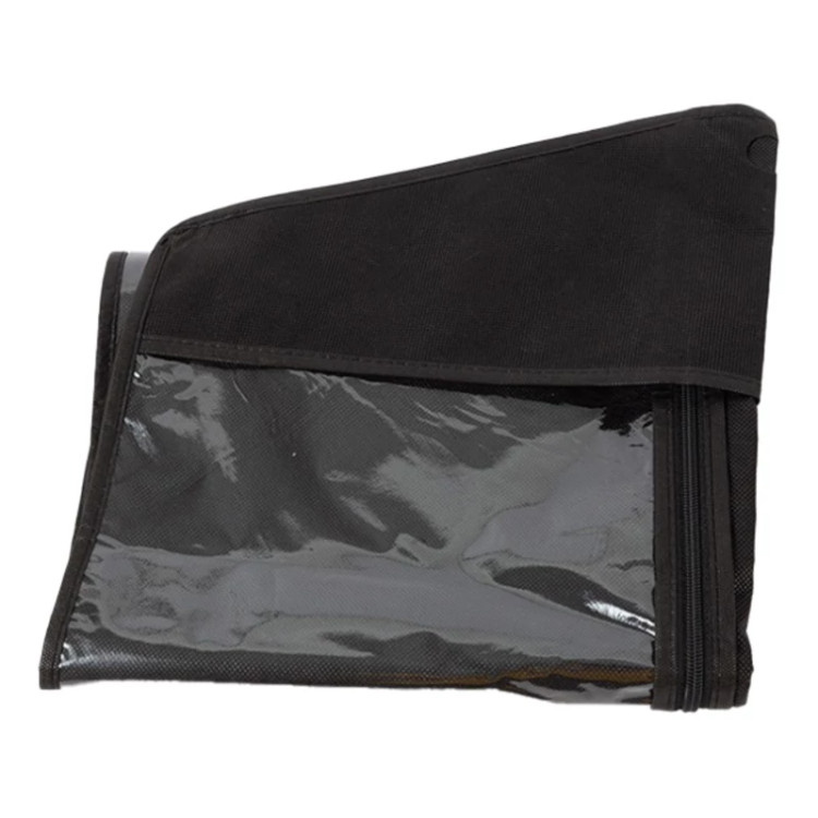 کاور مانتو از جنس پارچه ضخیم و با کیفیت و طلق شفاف جهت رویت لباس خود و در ابعاد 120 در 60 سانتیمتر در رنگ های مشکی و قهوه ای تولید شده و شما میتوانید بدون نگرانی از ورود گرد و غبار یا بو گرفتن لباس های خود از آن استفاده نمایید.