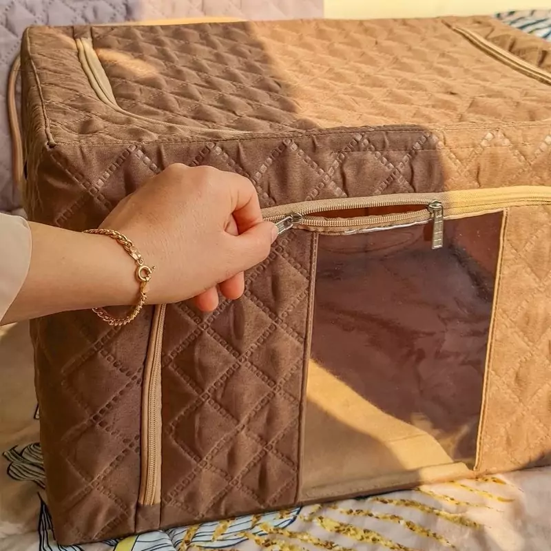 باکس لباس لیلیوم مدل دو درب همراه با اسکلت فلزی تاشو 4 میل و کفی 3 میل MDF و پارچه 3 لایه فلامنت در ابعاد 50x40 سانتی متر در ارتفاع 30 سانتی متر میباشد جنس رویه پارچه ضخیم بوده و در داخل آن اسکلت فلزی با قابلیت تا شوندگی برای ایستایی آن تعبیه شده است همچنین این نظم دهنده داری یک کفی بسیار مستحکم توکار میباشد که ایستایی آن را بیشتر میکند و مانع از دفرمه شدن آن حتی توسط اجسام سنگین میشود. در این باکس یک عدد زیپ با سر زیپ دوبل در قسمت بالایی و جلوی کار قرار داده شده است تا استفاده از آن راحت تر باشد و یک پنجره در قسمت جلویی آن تعبیه شده است تا لوازم داخل باکس را بدون باز کردن زیپ هم بتوان مشاهده کرد.