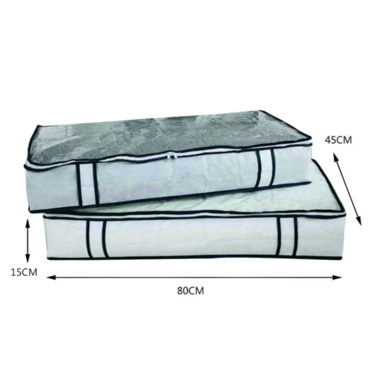 باکس نظم دهنده رختخواب مای هوم از جنس پارچه ضخیم و طلق شفاف ساخته شده و طول آن 80 عرض 45 و ارتفاع 15 سانتیمتر است که میتوانید انواع رختخواب , لباس و پتو را در آن جای دهید. همچنین دارای درب زیپ دار جهت جلوگیری از نفوذ گرد وغبار و حشرات می باشد که قابلیت شستشو با دست و ماشین لباسشویی را دارد.