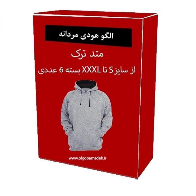 الگو آماده خیاطی هودی کلاه دار و جیب دار مردانه از سایز S تا XXXL