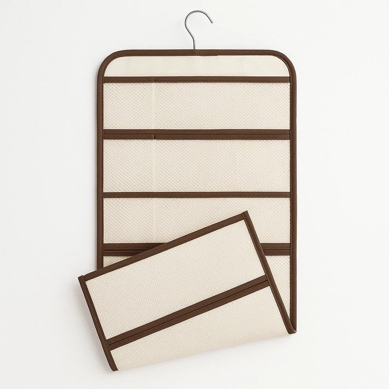 نظم دهنده جوراب و لباس زیر و اکسسوری ارگانو دارای 22 جیب مجزا به صورت پشت و رو با تنوع سایز جیب ها است.این نظم دهنده دارای ابعاد 40x80 و به صورت دوطرفه و دارای آویز فلزی است.(بسته شامل 4 عدد نظم دهنده 22 خانه و 1 عدد آویز نظم دهنده 3 خانه است.)