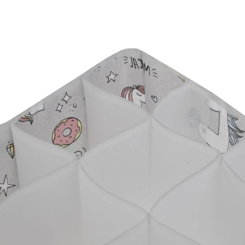 نظم دهنده کشویی کودک لیلیوم مدل یونیکورن ( طرح اسب تک شاخ ) با بهترین دوخت , چاپ و پارچه ضخیم با کیفیت تولید شده است.این ارگانایزر در ابعاد 33x15x11 سانتیمتر و دارای 8 خانه می باشد که به راحتی می توانید وسایل کودک خود را در آن جای داده و مرتب کنید. مشخصات فنی محصول: ** مشخصات ** ابعاد: 33x15x11 سانتیمتر وزن: 0.100 کیلوگرم جنس: پارچه محفظه نگهداری: معمولی